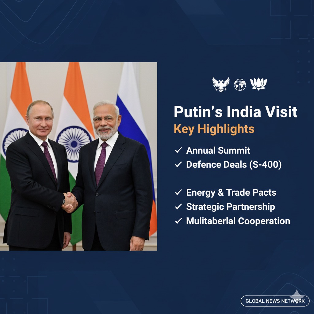 Russian President Vladimir Putin visited India in early December 2025 for an important summit with Prime Minister Narendra Modi, aimed at boosting the India-Russia partnership.