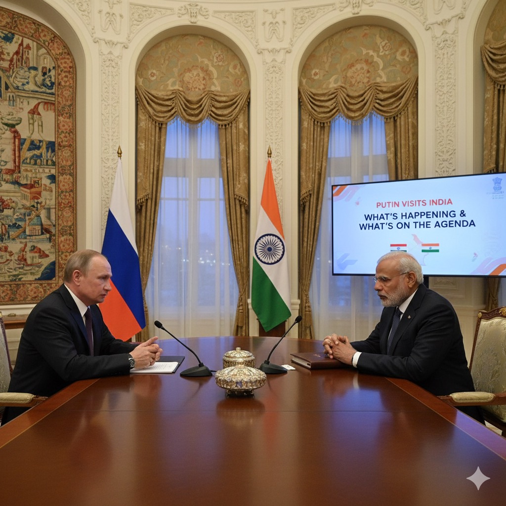 Russian President Vladimir Putin is visiting New Delhi for a high-level summit with Prime Minister Narendra Modi. The talks center on strengthening long-term cooperation between the two nations. Key focus areas include: