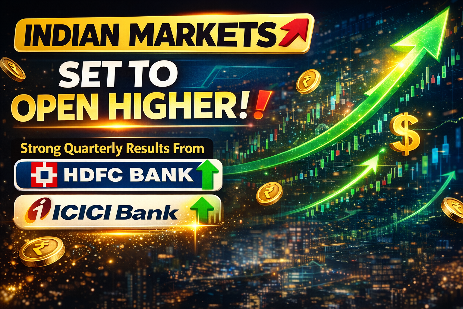 Indian equity markets are expected to open on a positive note, supported by robust quarterly results from major lenders like HDFC Bank Limited and ICICI Bank.
