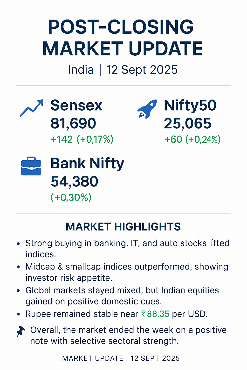 • ๐Ÿ“ˆ Sensex: Closed at 81,690 (+142 points | +0.17%)