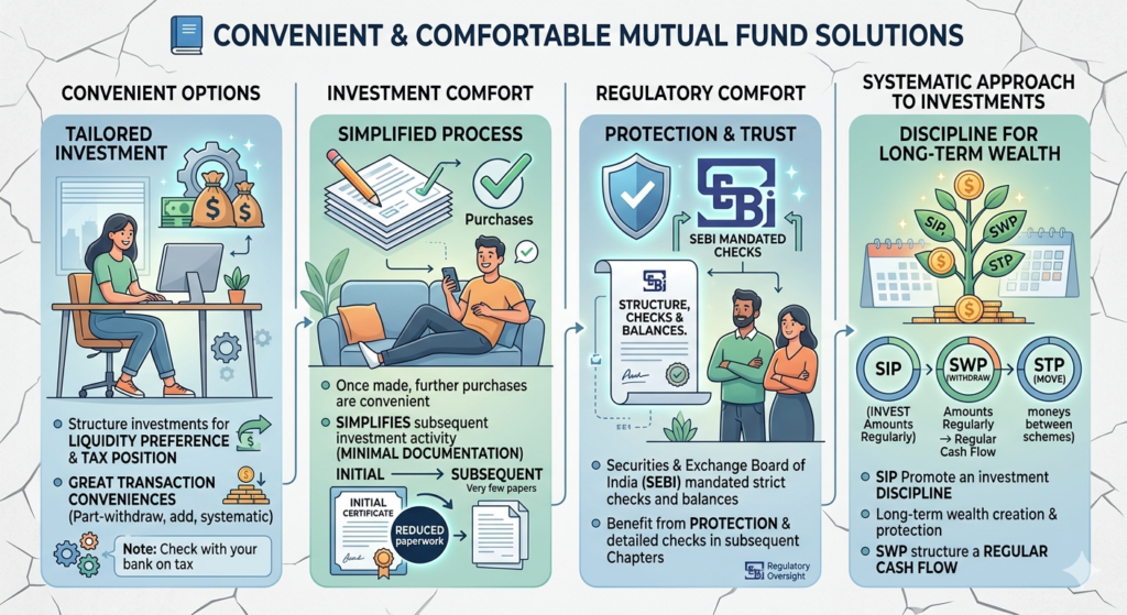 - Mutual fund schemes offer flexible options to match your liquidity needs ๐ง and tax planning ๐