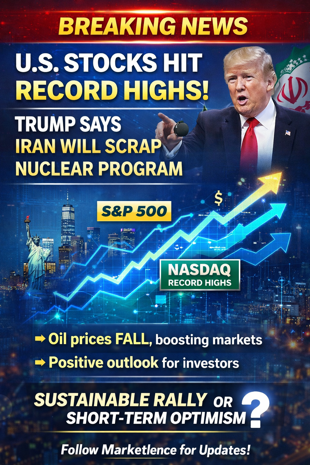 U.S. stock markets surged to fresh record highs after President Donald Trump indicated that Iran could suspend its nuclear program, boosting investor confidence and easing geopolitical concerns.