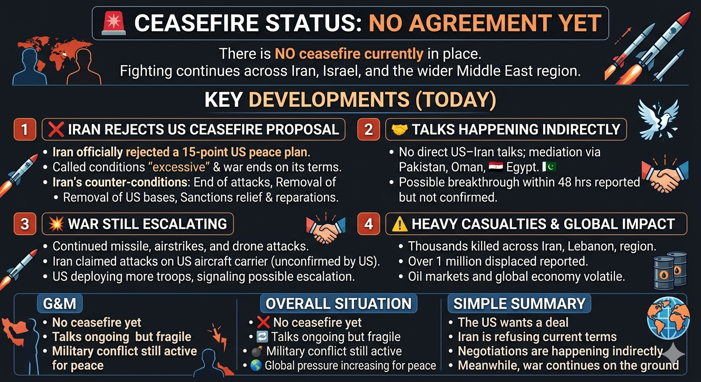 1. โ Iran rejects US ceasefire proposal